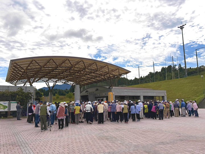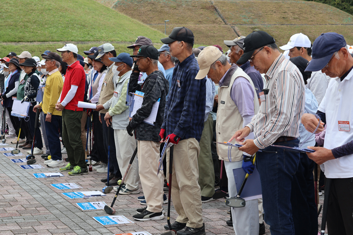 開会式の様子。皆さま待ちかねたグラウンドゴルフ大会の開幕です!