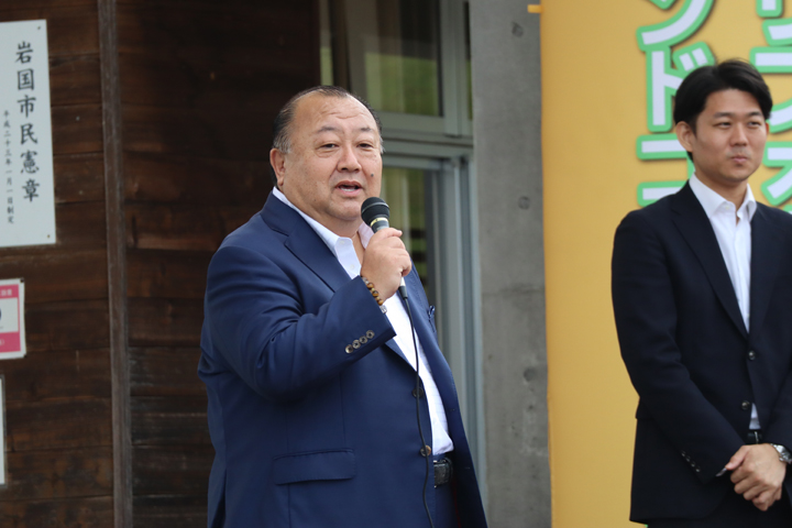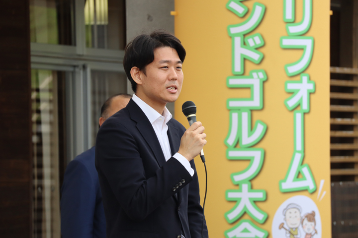 社長による開会式の挨拶、衆議院議員 岸信千世氏 による来賓の挨拶、