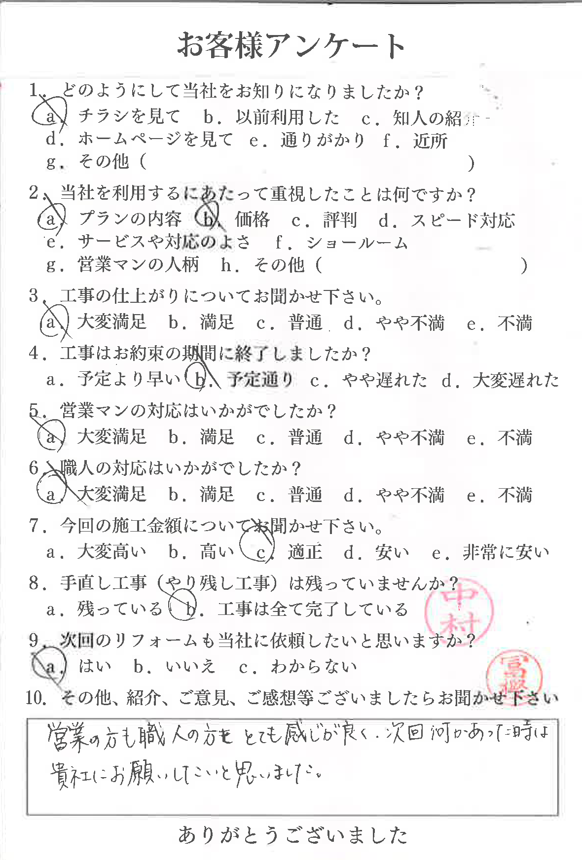 - おハガキで頂いたお客様の声【洗面所】