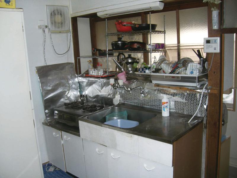 | ちょこっとリフォームが全面リフォームに拡大!その一環でのキッチン改装です。幅の広いシステムキッチンを設置するため90度回転した位置に移動します。 |