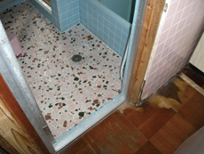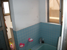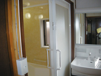 | 木部が腐ってきたこともあり、タイル貼りで寒い空間だった浴室を一新することにしました。 | ドアの木部も腐食が進んでいたので、合わせて取り替えることに。 |