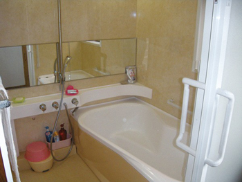 | 「足を伸ばしたまま入れる浴槽にしたい」との施主様のご要望通り、広くしました。 | 保温性に優れた浴槽のあるユニットバスを設置しました。 |