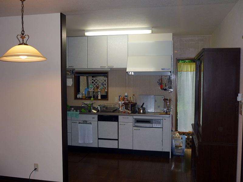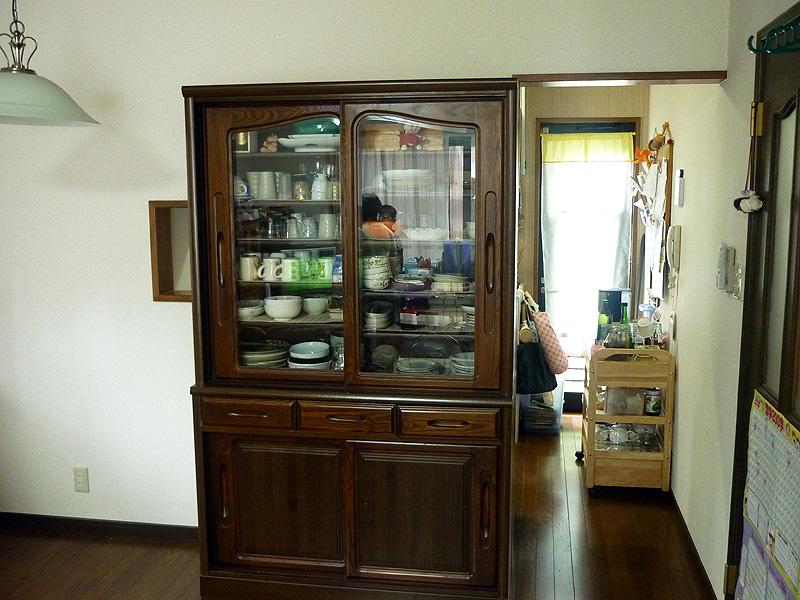 | キッチンとリビングの間に対面壁があり、キッチンエリアに置けない食器棚が対面窓をふさいでいる状態でした。 |
