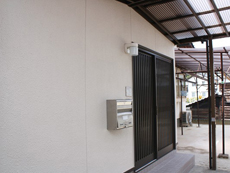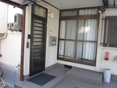| 施工前の勝手口の外観です。 | 施工後、しっかりとした裏玄関になりました。 | お客様をお迎えできる裏玄関です。 |