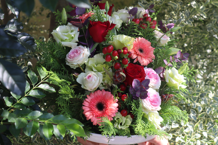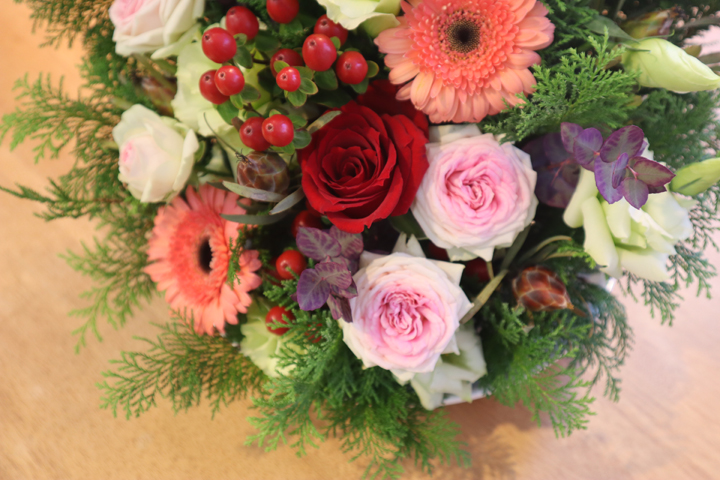 高く掲げながらの撮影。どこか花々の重みを感じる一枚。