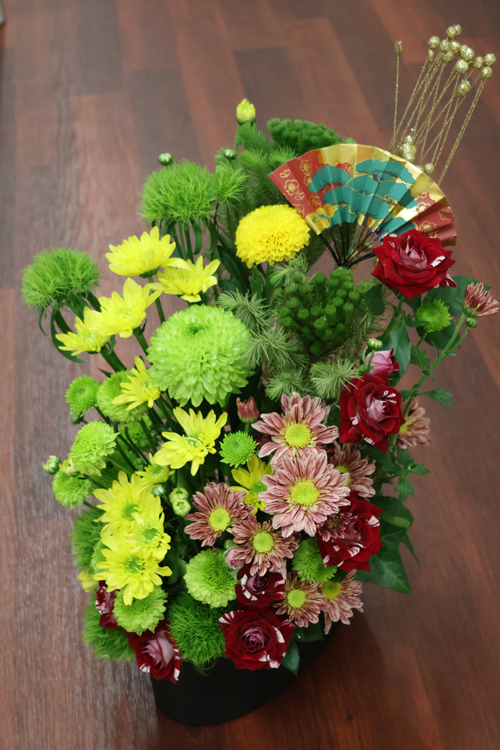 新春の息吹を感じるアレンジ花にする事が出来ました!