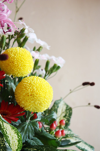先月のフラワーアレンジメントに使いたかった「ピンポンマム」に出会えました!!