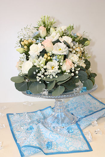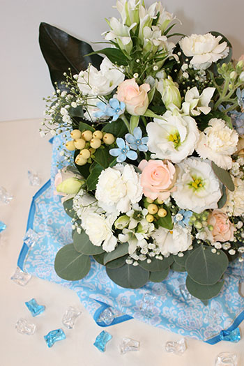 まわりにちりばめた青と透明なガラスキューブは、以前夏に使用したこともあります。