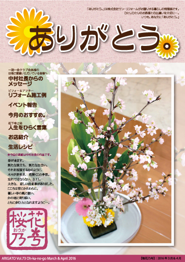 ありがとう。【桜花乃号】Vol.73(2016年3月発行)3&4月号