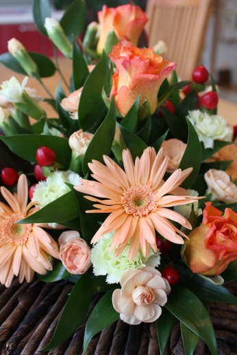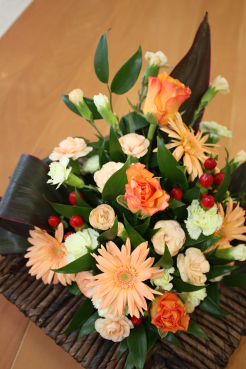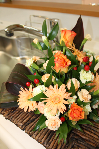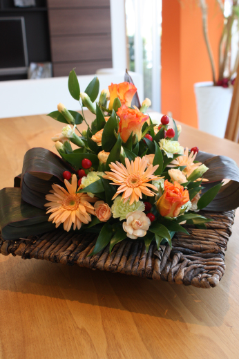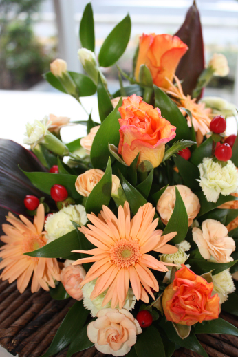 今回はバラ、ガーベラ、スプレーカーネと、オレンジを集めてみました。