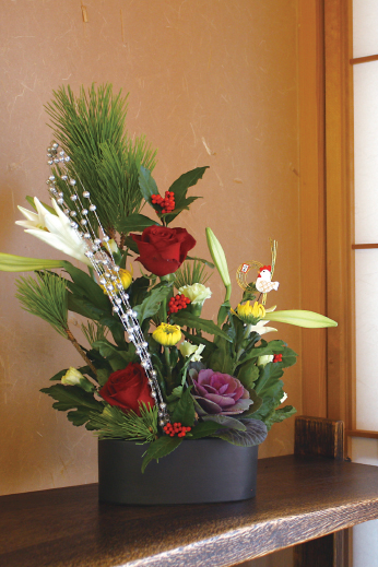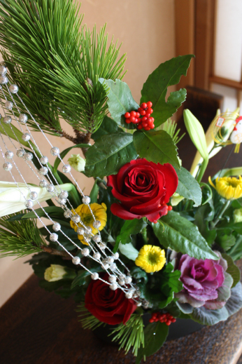 今年は黒い花器を使い、シックな感じにまとめてみました。