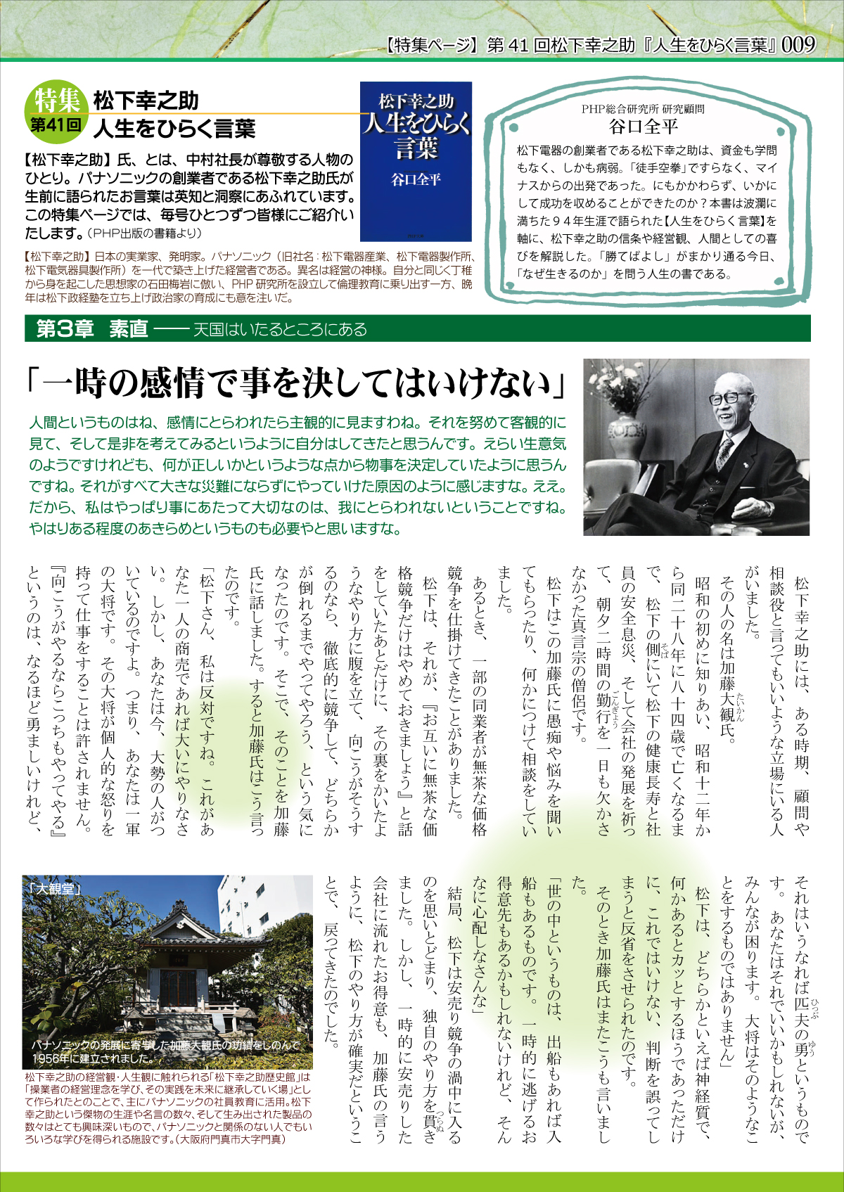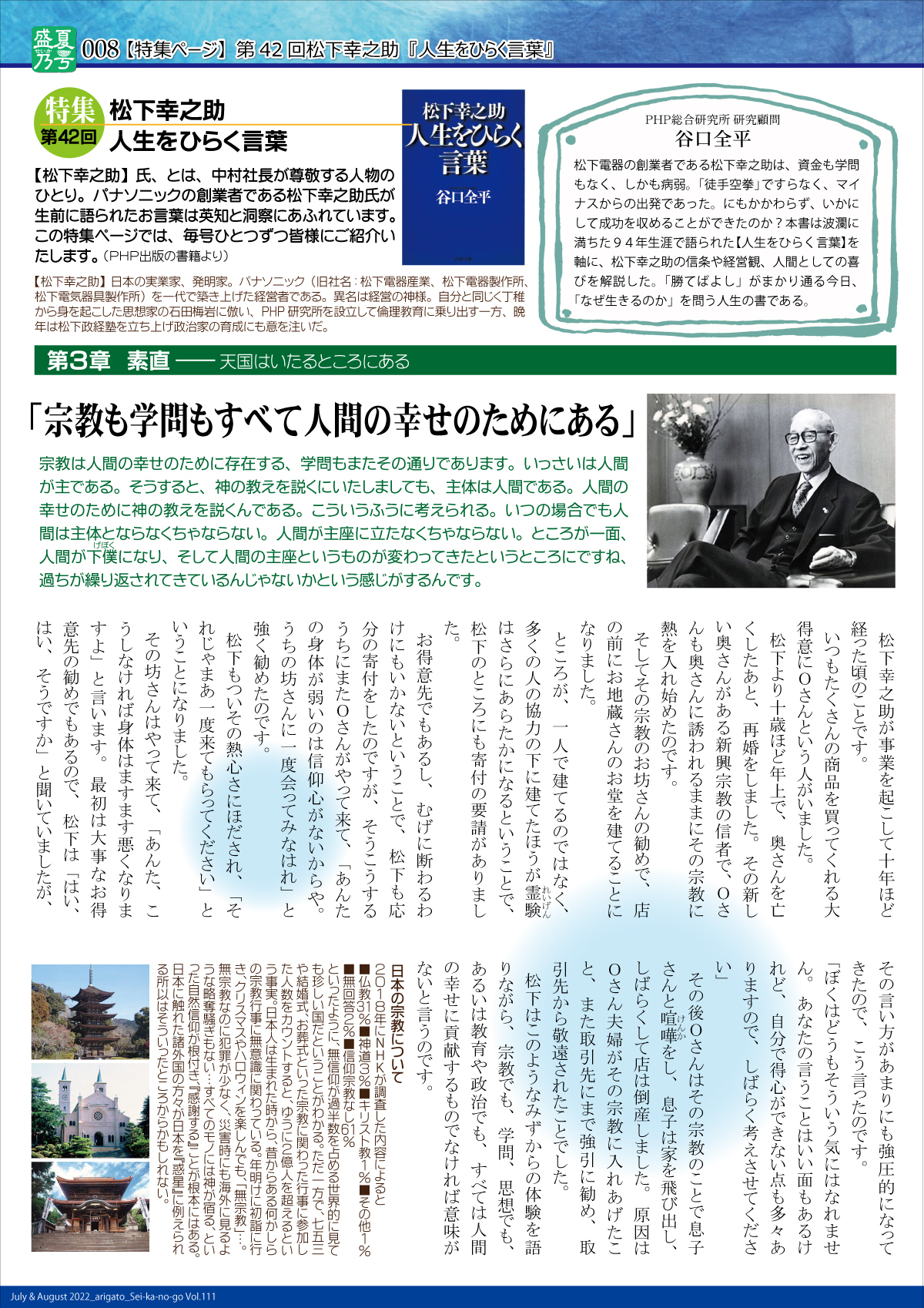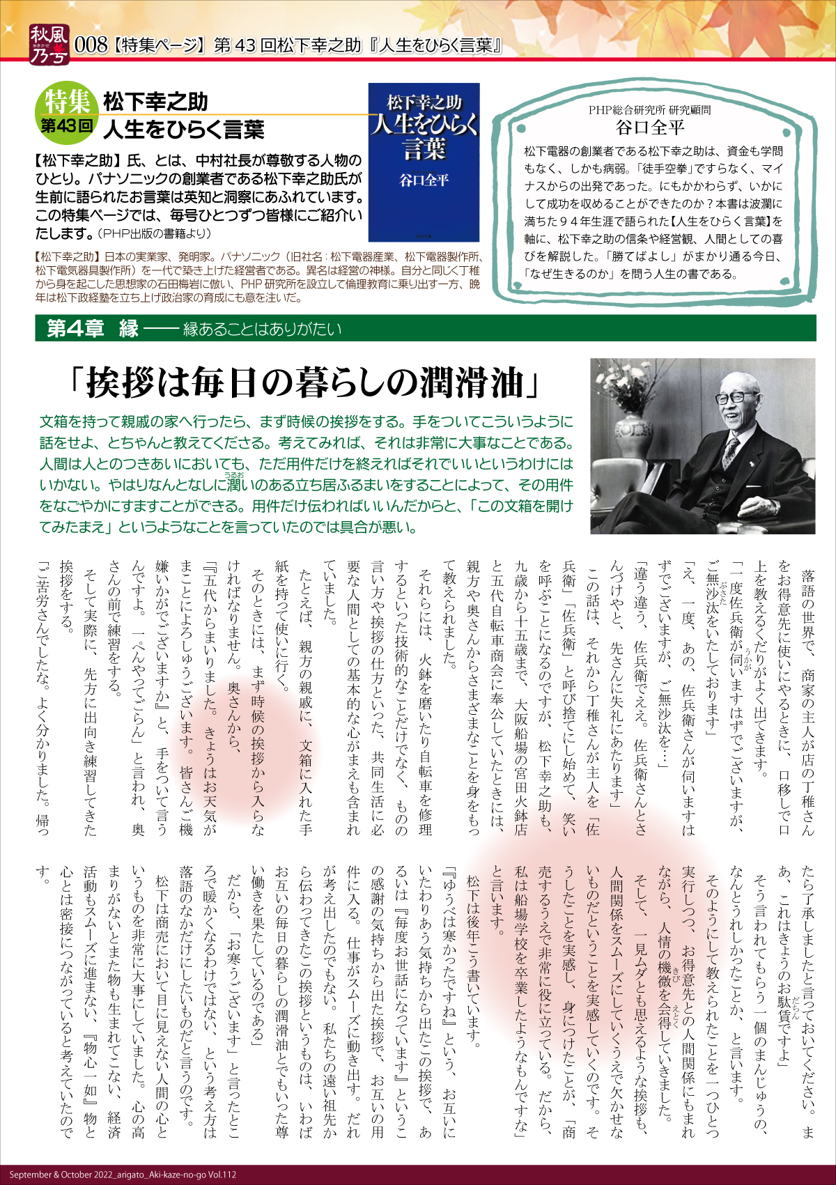 ありがとう。vol.113に掲載した松下幸之助 人生をひらく言葉のご紹介ページ。