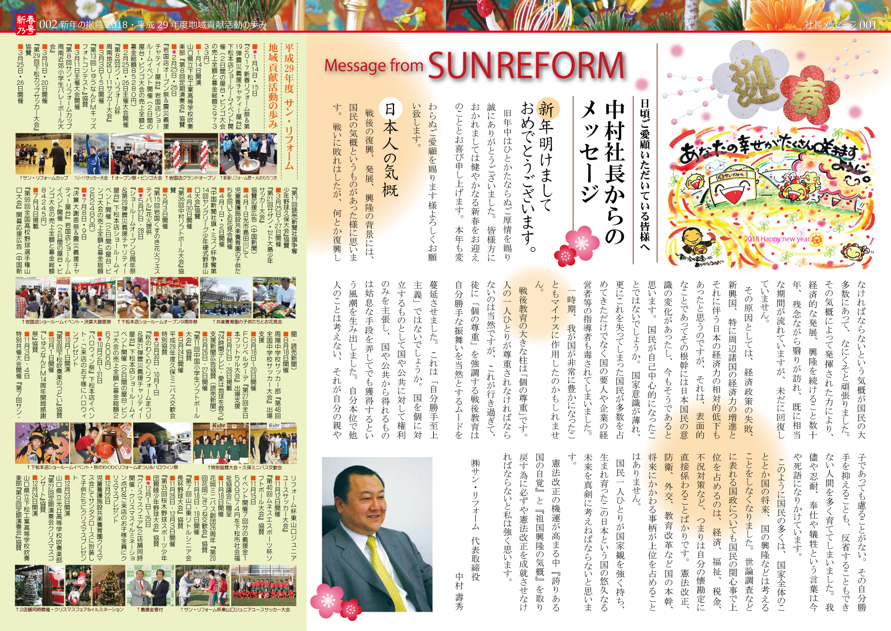 2018年の新年のご挨拶と、2017(平成29)年サン・リフォーム地域貢献活動の歩みを掲載いたしました。