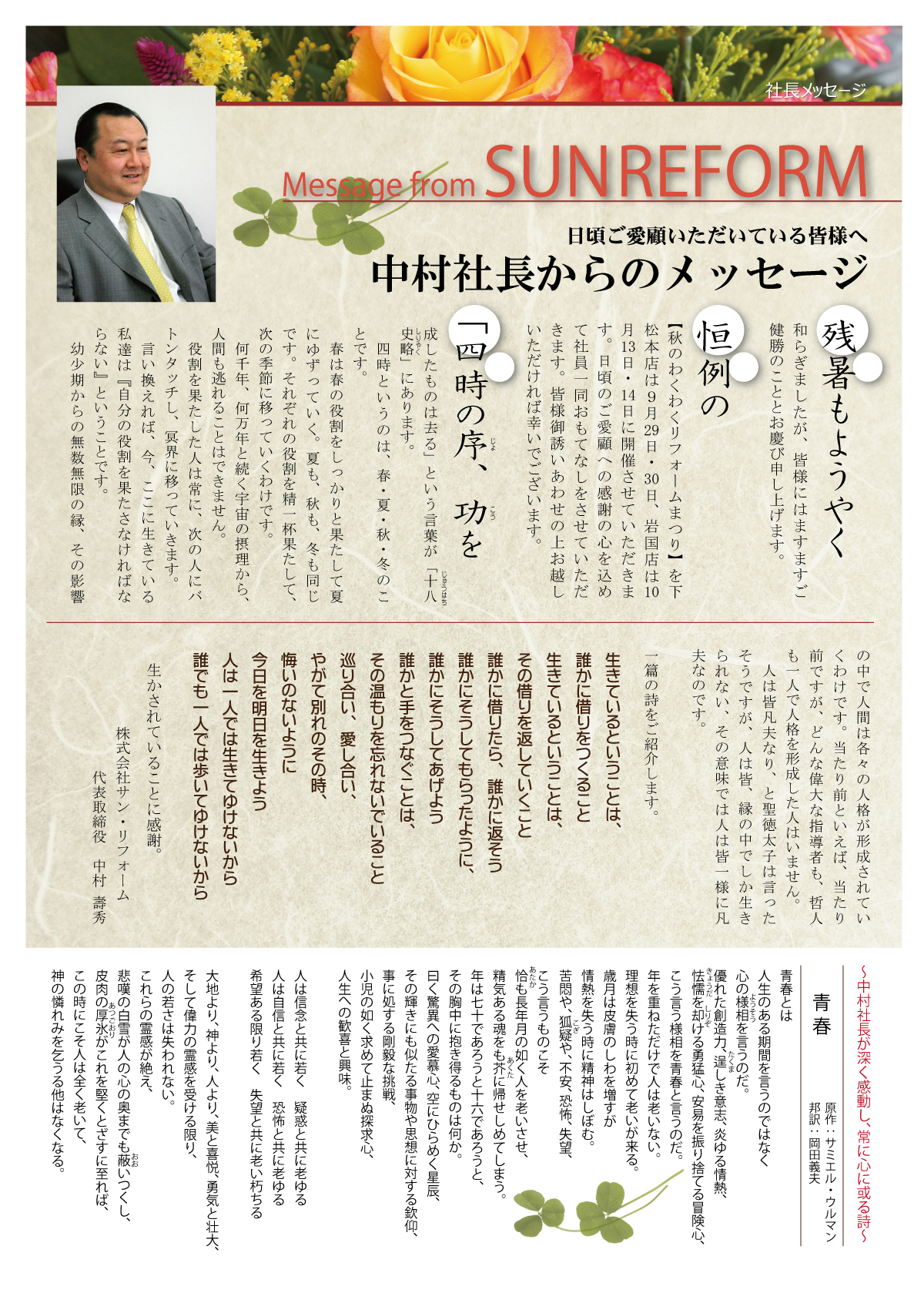 ありがとう。【秋風乃号】vol.88 中村社長からのメッセージ