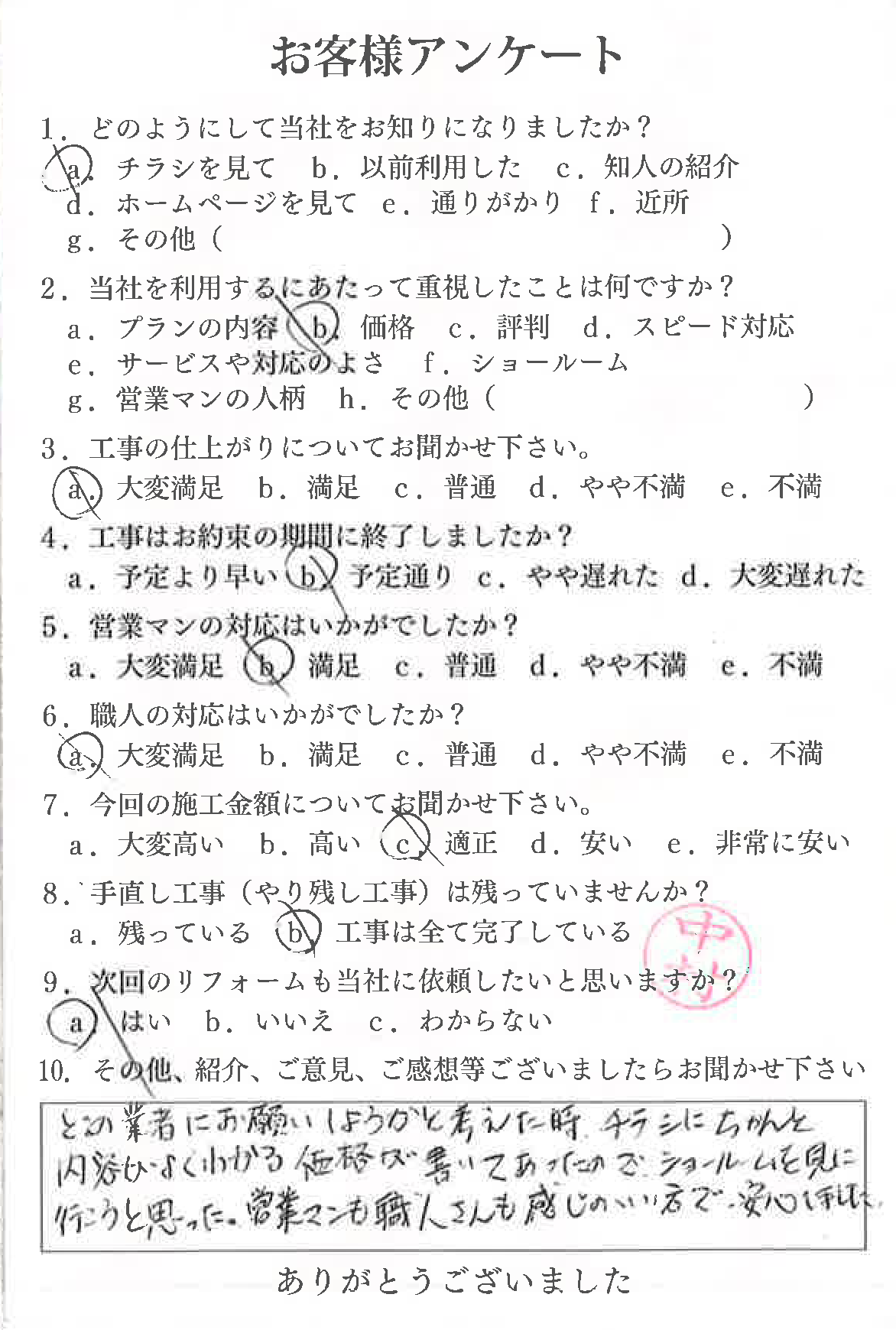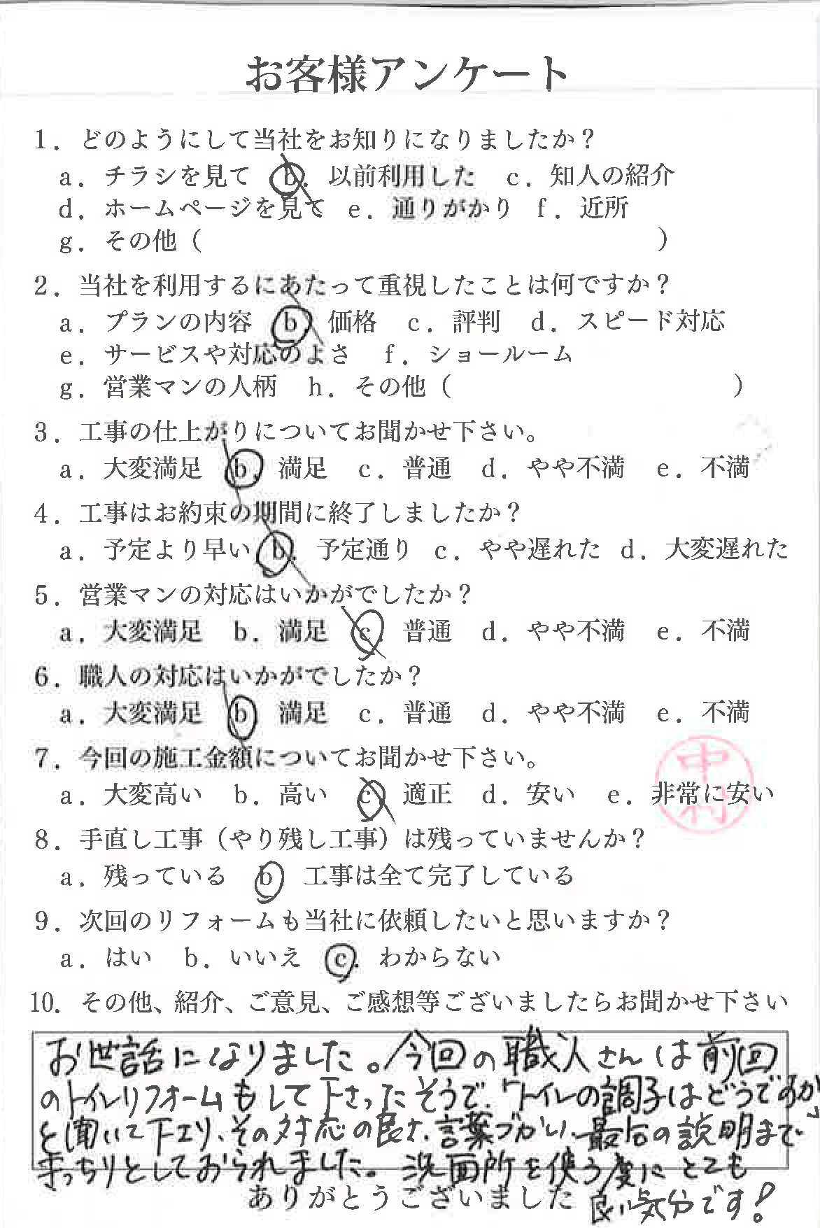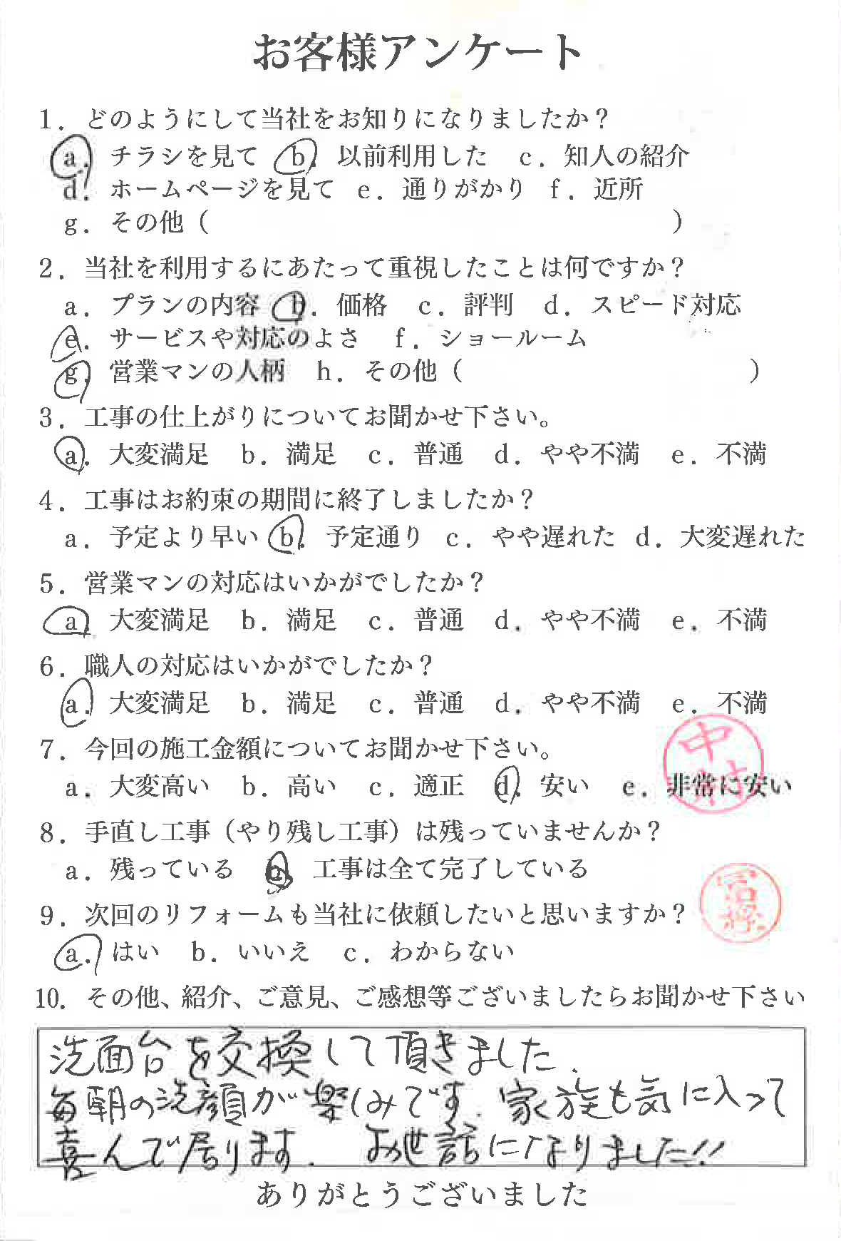 - おハガキで頂いたお客様の声【洗面所】