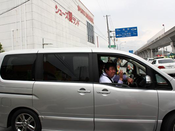 | チームサン・リフォーム、出発前の記念撮影です。 | 午後3時半、宮城県女川に向けて出発しました。 |