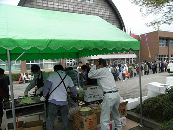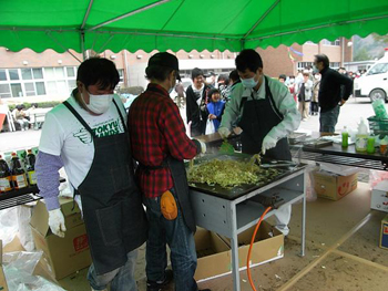 | 長い行列ができました。1時間も待っていただくようになって...申し訳なかったです... | 行列は絶えることがなく、8時過ぎから焼き始めてから午後4時まで焼きそばを作り...1000人分の焼きそばを配りました。 |