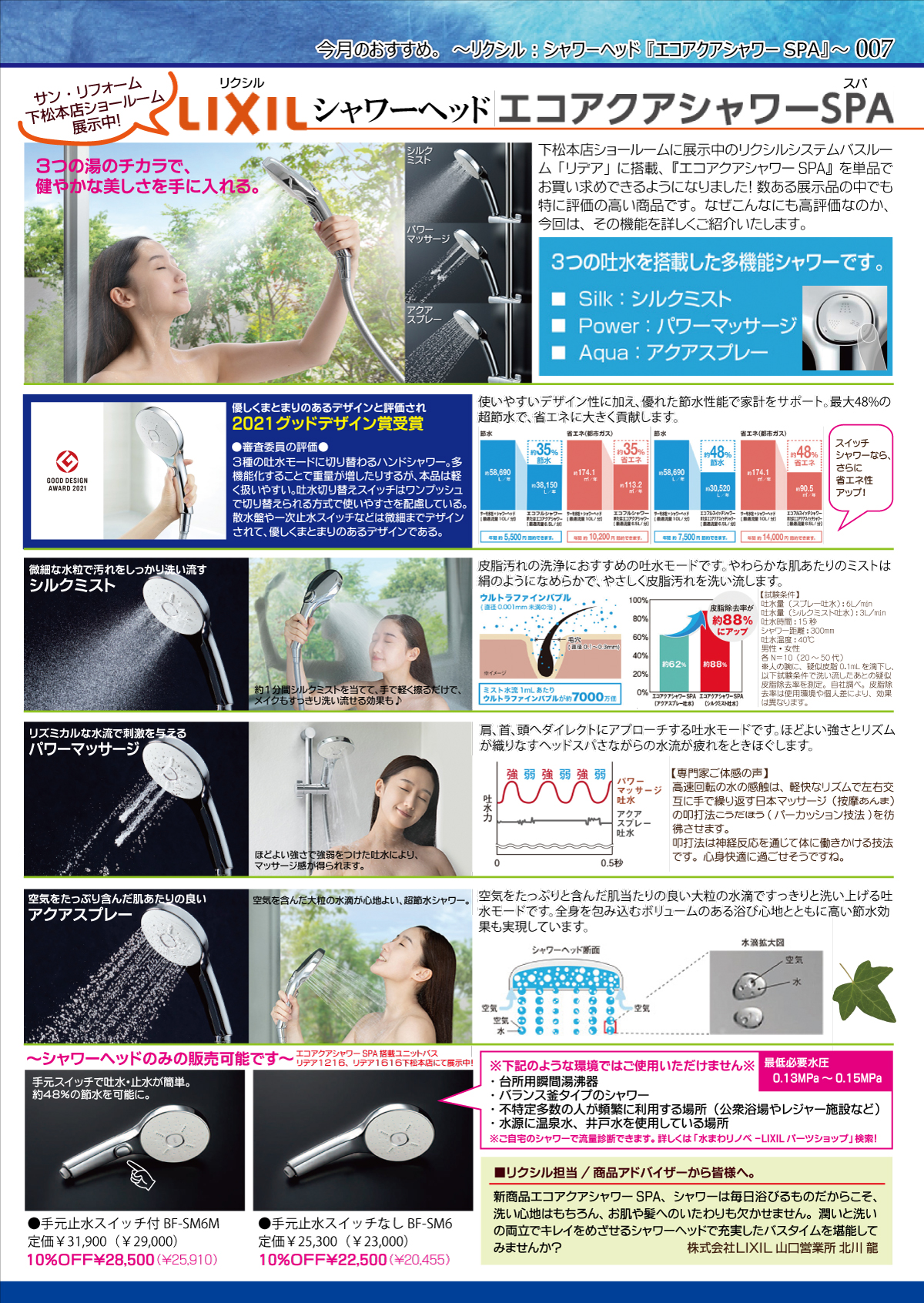 ありがとう。【盛夏乃号】vol.111 リクシル:シャワーヘッド~エコアクアシャワーSPA~
