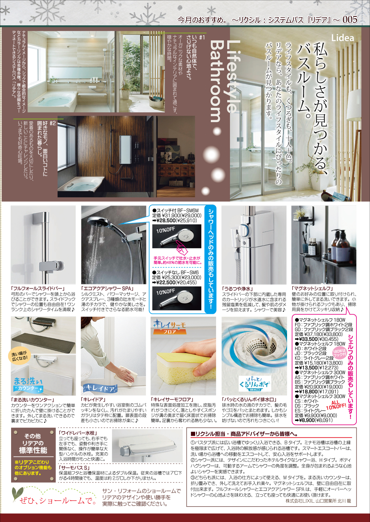 ありがとう。【風花乃号】vol.113 今月のおすすめ。~リクシル:システムバス『リデア』~