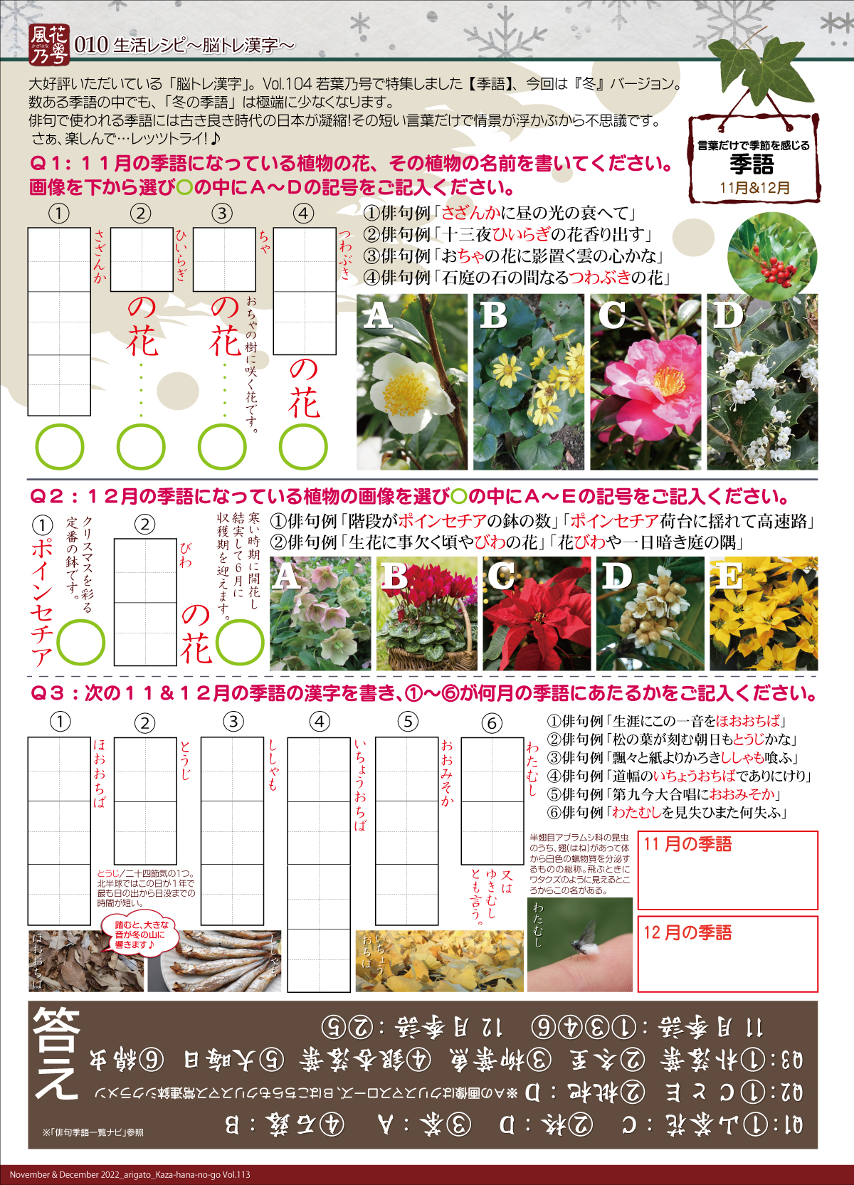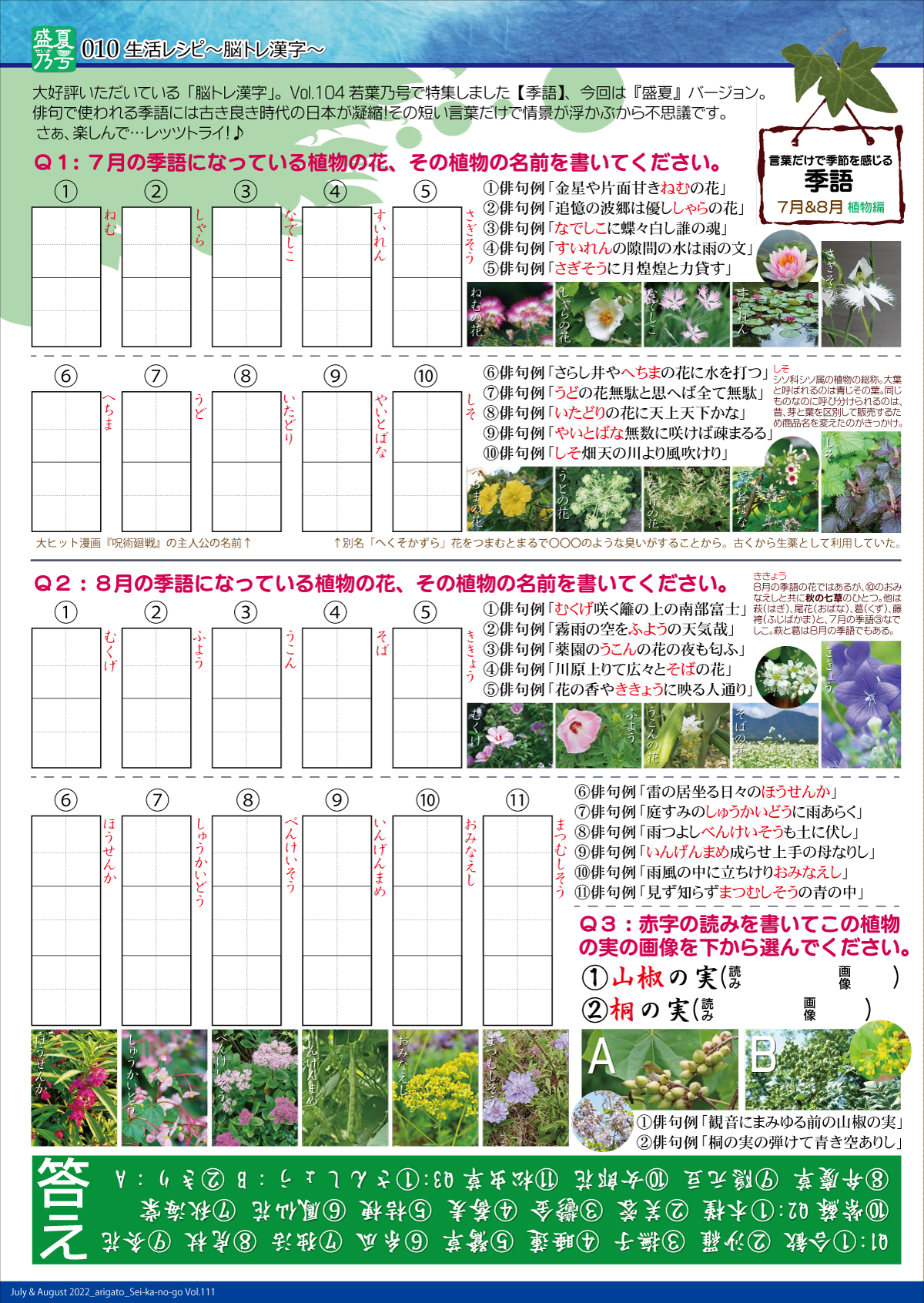 ありがとう。【桜花乃号】vol.115 生活レシピ~脳トレ漢字~