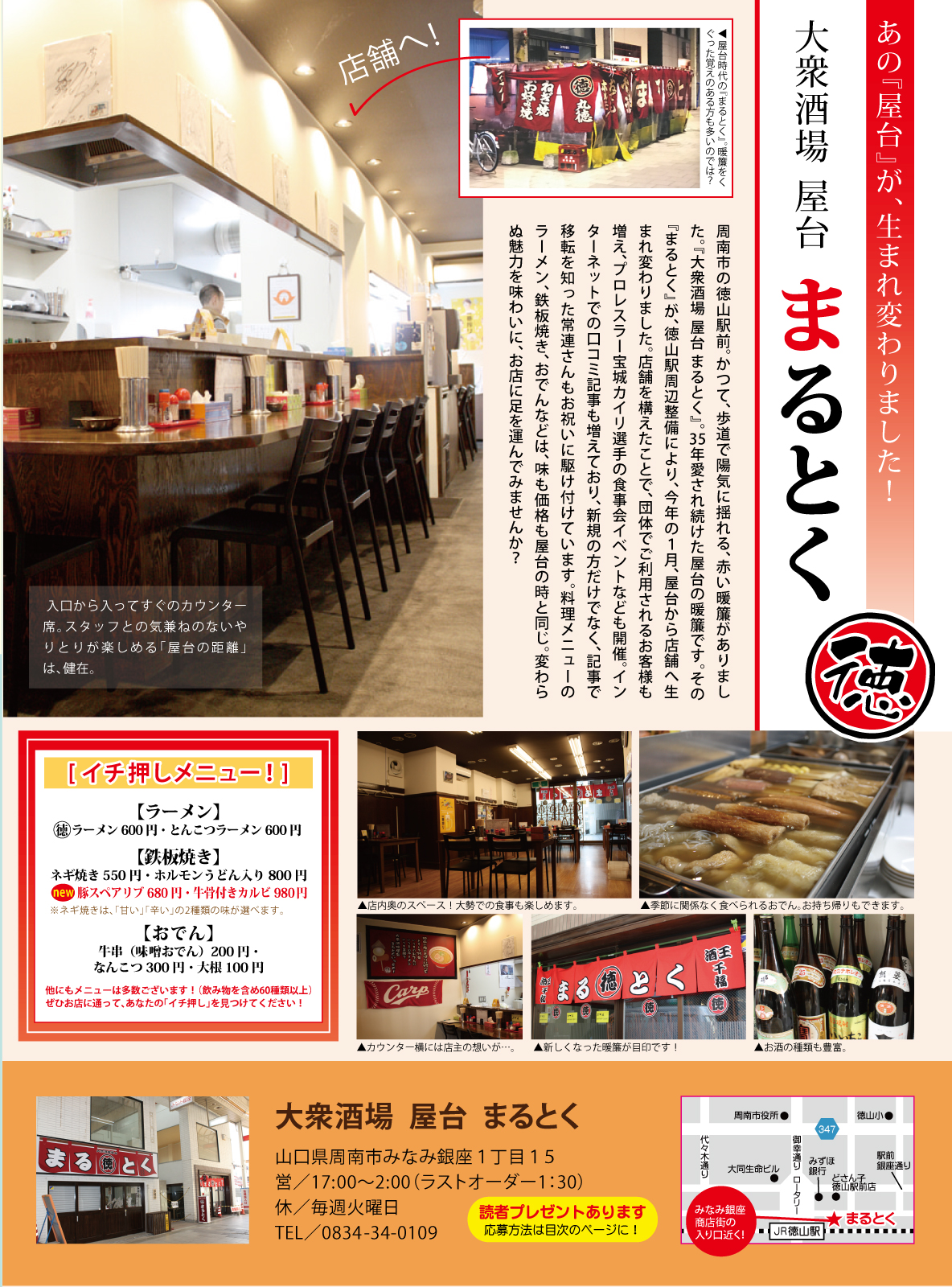 お店紹介~周南市 「大衆酒場 屋台 まるとく」~